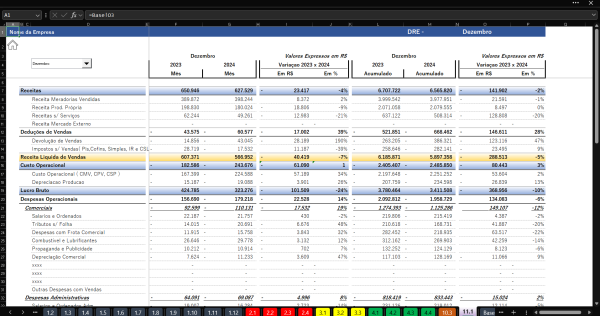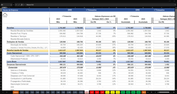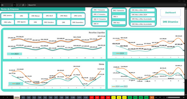 • Análises Mensais Detalhadas: Tenha acesso a análises mensais do DRE dos últimos anos, permitindo uma visão completa e precisa do desempenho financeiro ao longo do tempo.